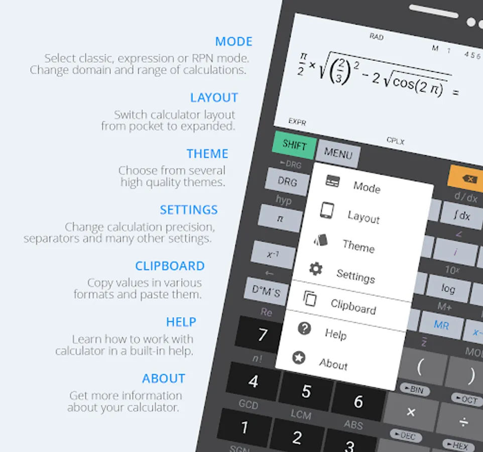 The calculator has many functions, such as: