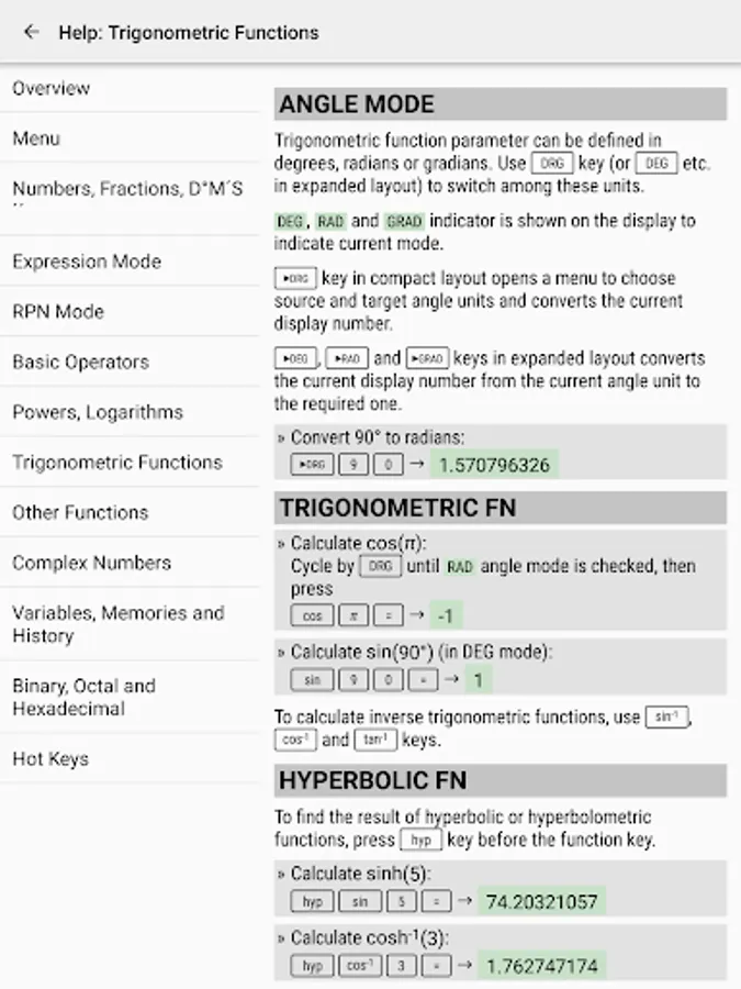 - trigonometric and hyperbolic functions;