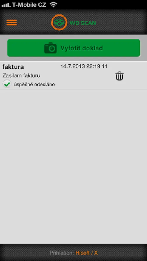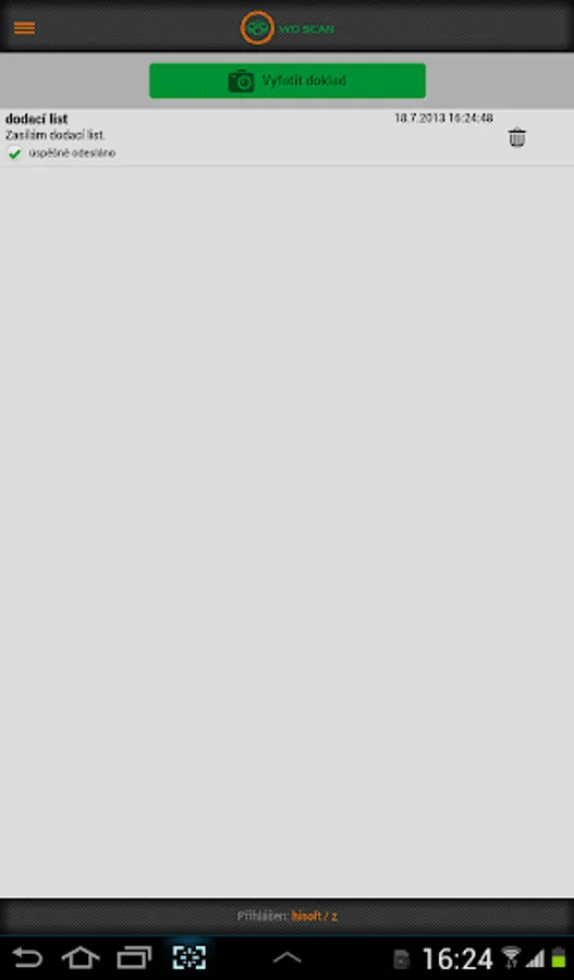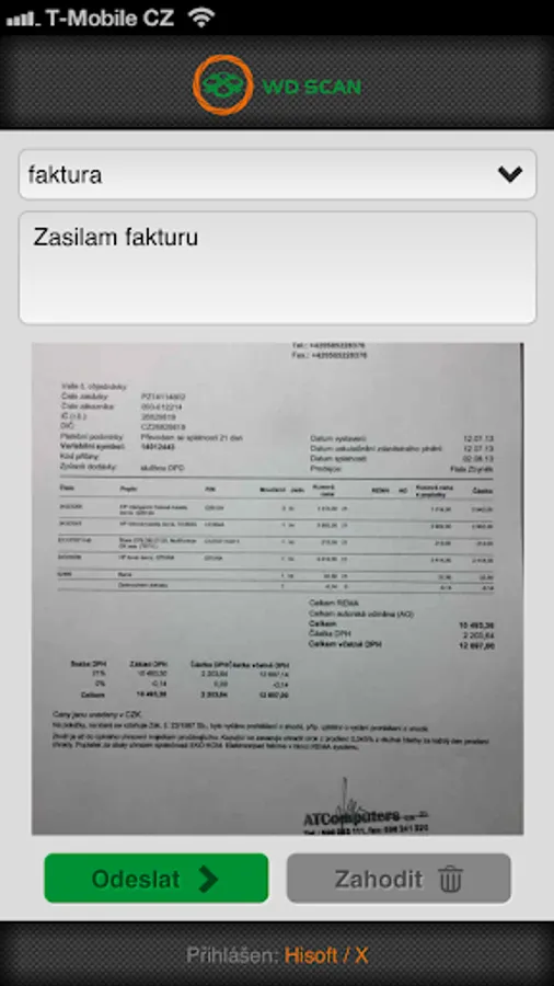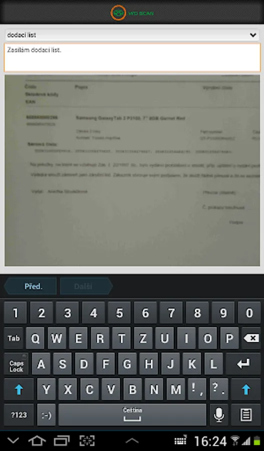 WD SCAN allows the driver to send from the phone or tablet copies of documents or photographs taken into Webdispatching (see www.webdispecink.cz). Image acquisition documents, you can sort by type (delivery note, invoice, ...) and they can also add a text note. Thus, the driver can remotely dispatcher to communicate vital information for continuing operations - transportation billing, documenting incidents and more. With WD SCAN and speed up the flow of documents in your company.