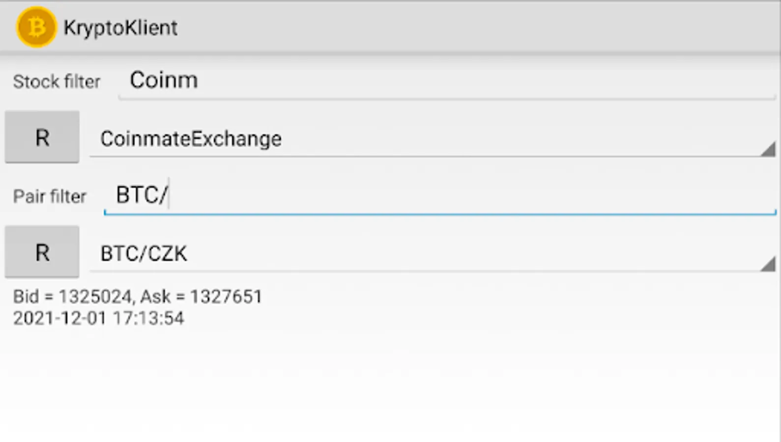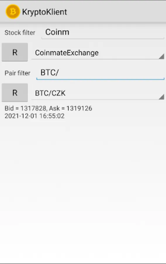 KryptoKlient is a very simple client of many cryptocurrency exchanges. It simply shows stock list and currency pair list and it shows its bid and ask values and nothing more. No registration/login is needed. Supported exchanges are: bitflyer, bitmex, bitstamp, bittrex, cexio, coinbase, coinmate, gemini, hitbtc, kraken, kucoin, lgo, poloniex, okcoin and simulated. It uses org.knowm.xchange java library.