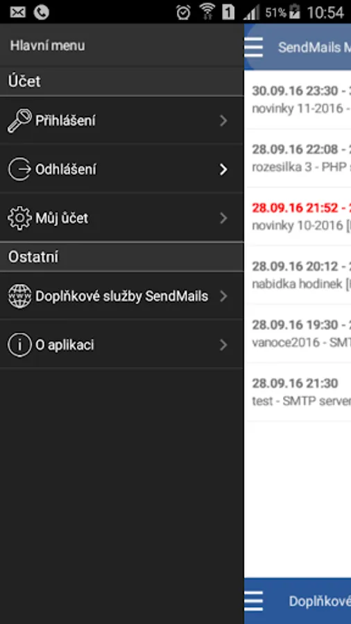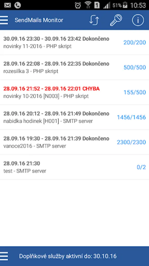 Application enabling the ongoing monitoring of bulk messaging program SendMails version 6 (hromadnaposta.cz)