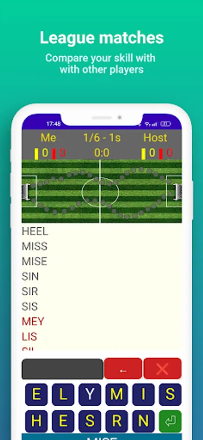 Make more words than your opponent from the available letters and beat him in a six-round match