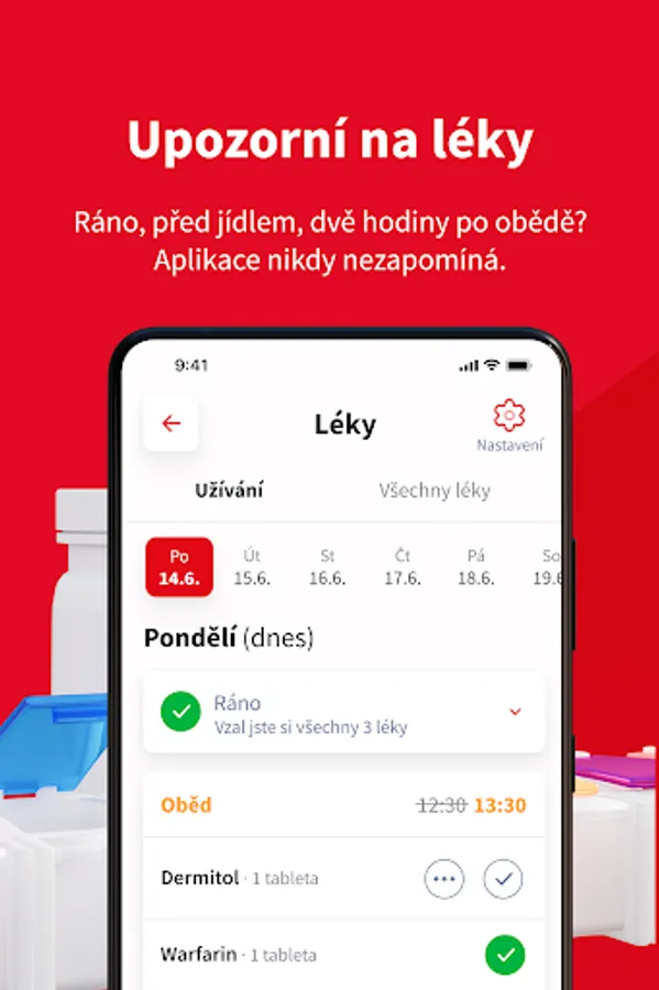 - Up-to-date information on prescription drugs and the possibility to request a prescription if you are running out of drugs