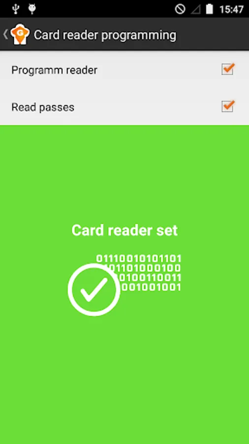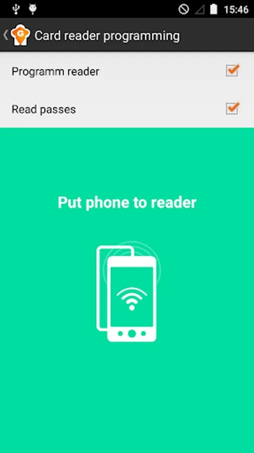 The communication between the phone and the reader is carried out using NFC (Near Field Communication) technology.