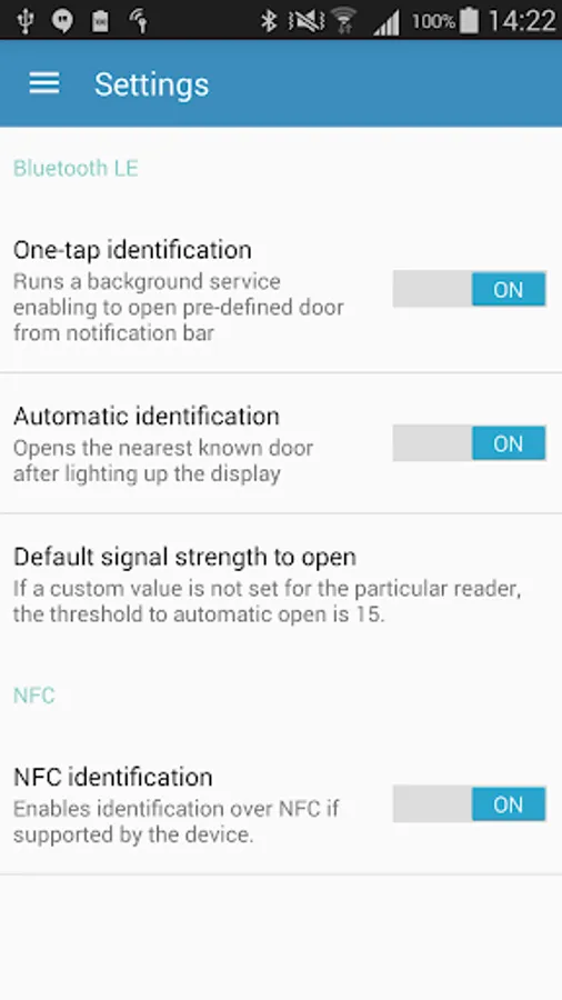 The IMAporter Mobile Key app uses a combination of NFC and Bluetooth Low Energy technologies supporting all mobile devices equipped with any of these technologies.