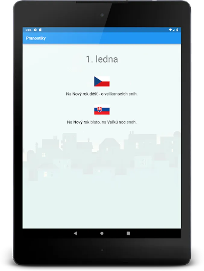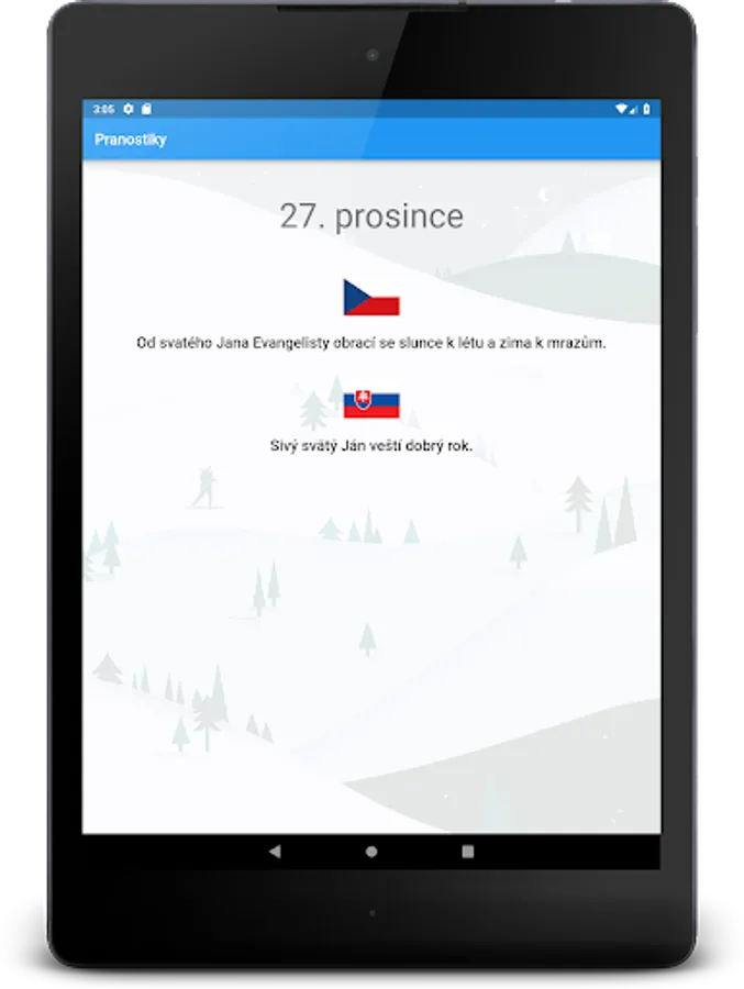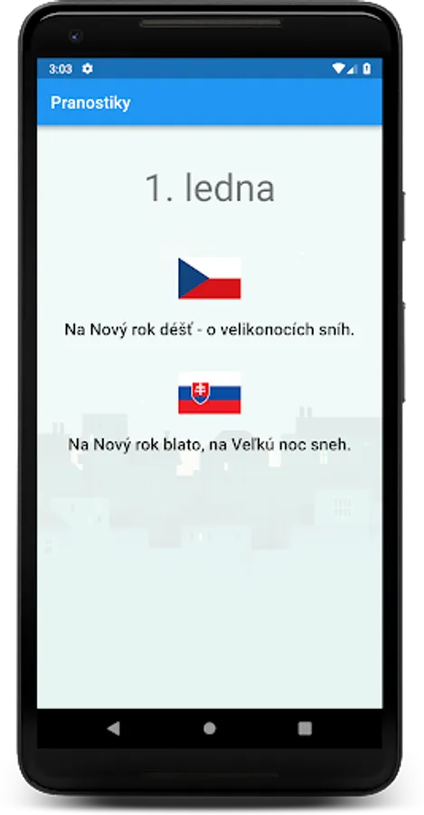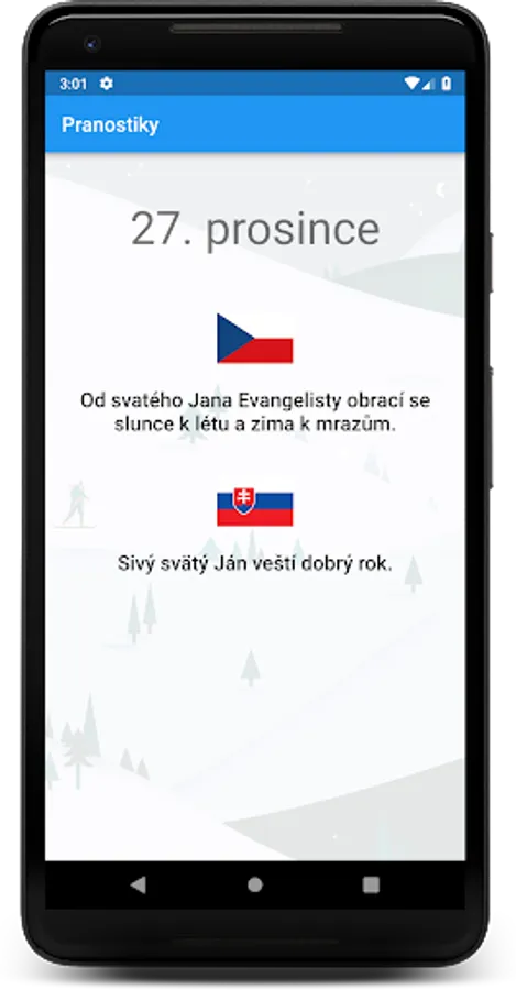 The application displays pranostiky on the selected day in the Czech Republic and Slovakia.