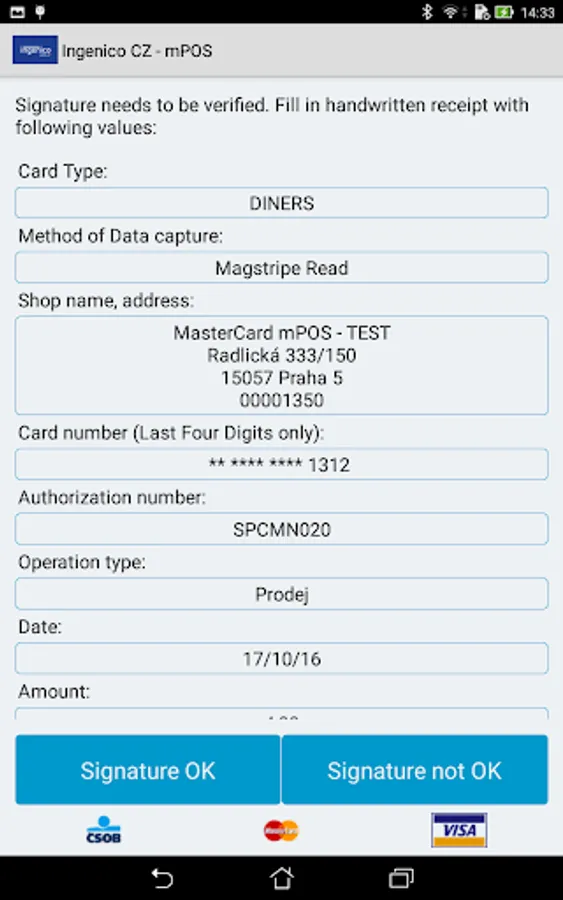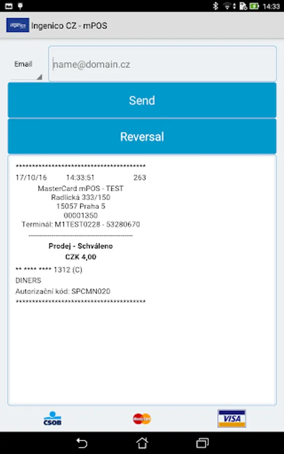 Mobile application Ingenico CZ mPOS is a unique application designed for mobile devices (smartphones, tablets) with Android operating system. It can be particularly used by small and medium merchants – ČSOB/Era customers, for acceptance of bank card payments.