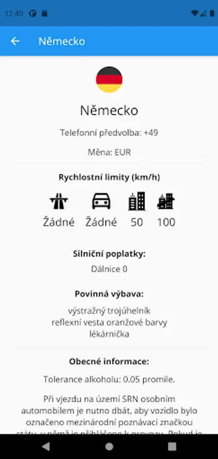 Do you look for information about regulations, fees, mandatory equipment or important telephone numbers every year when traveling abroad? Wouldn't it be easier to carry this information with you all the time without having to access the Internet? The "information about abroad" section will relieve you of the annual stress when planning a holiday or business trip.