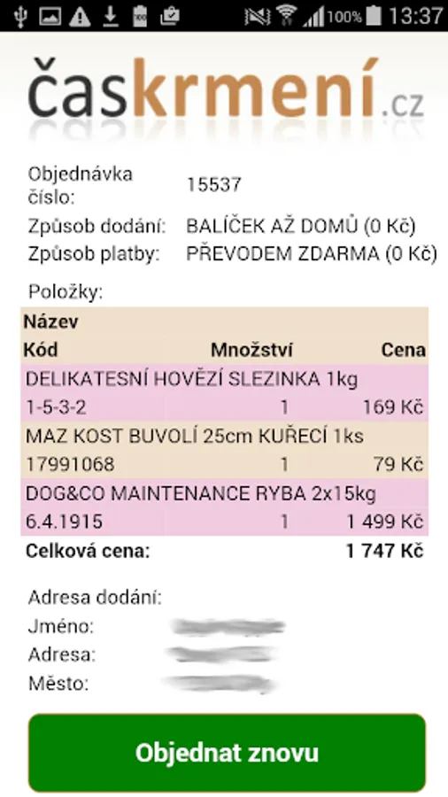 Save time and repeat orders with a single click! This application serves our customers and helps to accelerate and simplify the order process. After clicking on the application icon appears on the screen last order. The customer scans it and then press the green send button. That's all. Using our app you will not have to open a browser, listing the store address, or search for products. If you are ordering more of the same goods, appku download to your mobile device, and enjoy ordering. Beautiful day wishes Miroslav Beran, Časkrmení.cz