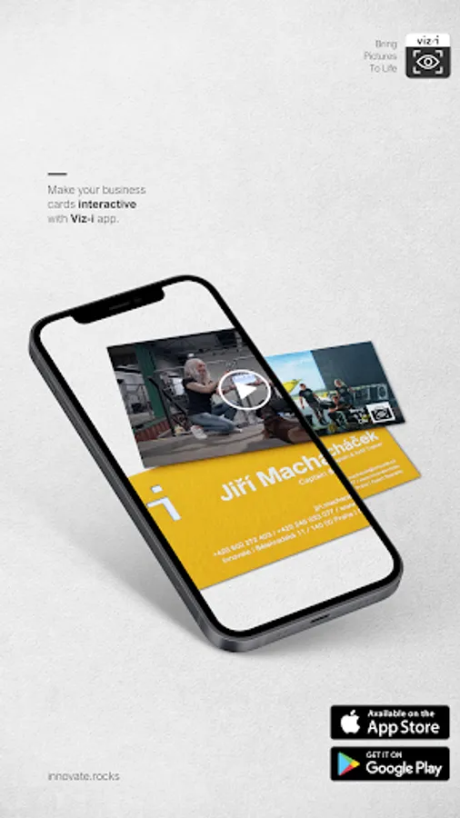 A card with the Viz-i app is the key to expanded reality experiences. In addition to written contact info, it can tell the story of your company or play an advertising video.