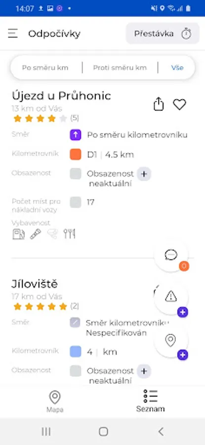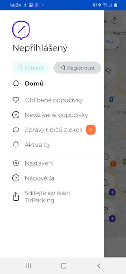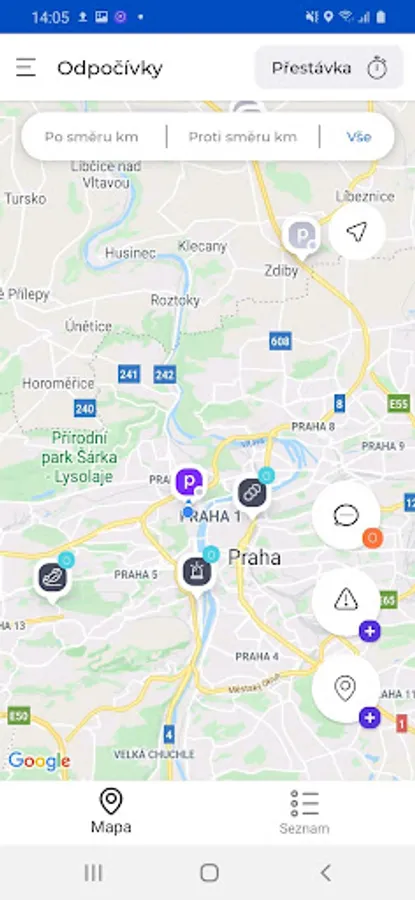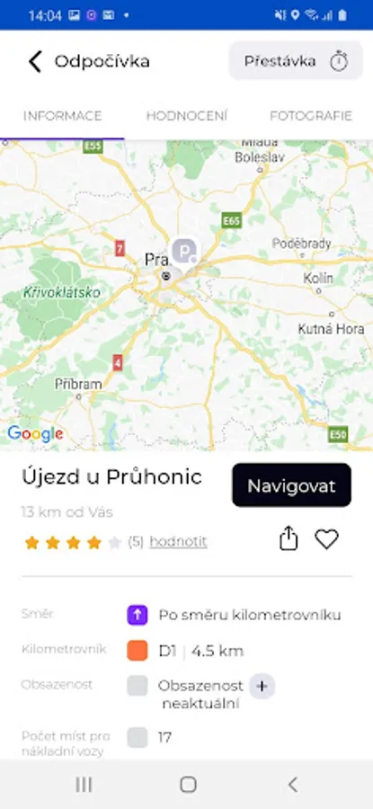 The application allows you to set an alert for an upcoming mandatory break and exchange messages with other drivers nearby. The application covers parking in the Czech Republic including their equipment (toilet, shower, refreshment ...)