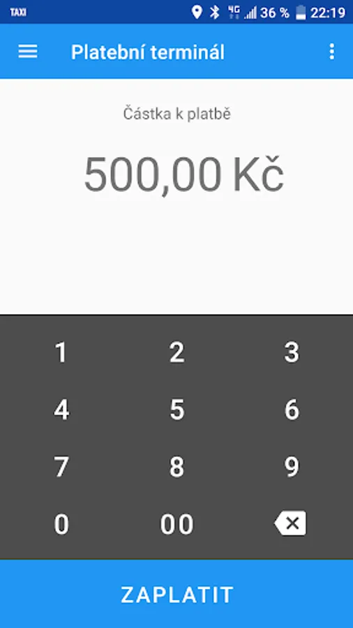 The application supports SumUp, GP tom and Ingenico payment terminals for users of accounts with ČSOB or ERA. The application automatically transfers the amount from the taximeter to the terminal and prints the appropriate document for both the trader and the customer. This extends the acceptance of payment cards to those that require the customer's signature on a printed receipt (eg American Express).