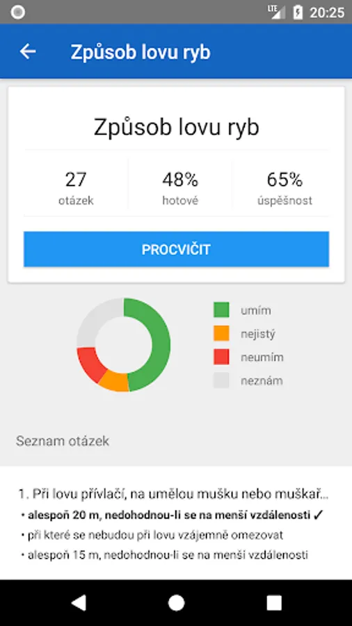 Do you go fishing? Tests for fishermen is an application for practicing trial tests to examine applicants to obtain a qualification for the issue of the first fishing license in the sense of § 10 paragraph 3 of Decree No. 197/2004 Coll., As amended to the Fisheries Act No. 99/2004 Coll. and at the same time applicants for admission as a member of the Czech Republic.