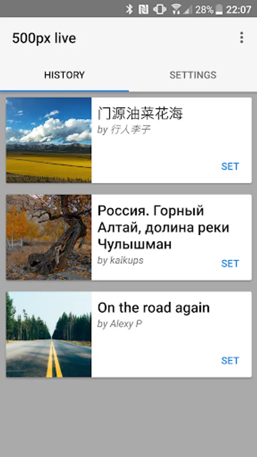 Live wallpaper displaying beautiful randomly chosen images from online services.