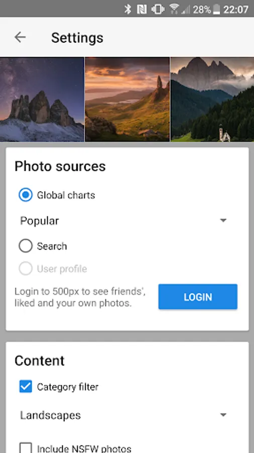 - Choose categories you like to see on your wallpaper.
