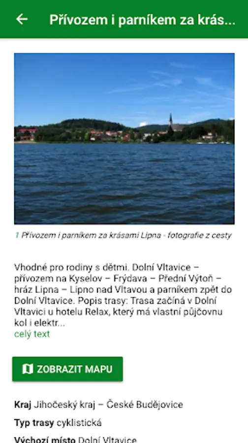 This application is a guide to your holiday in Lipno. It will show you the most attractive places of the breathtaking natural region and so you will find modern attractions in Lipno nad Vltavou, historical buildings, views, tips for trips, tourist destinations. In addition, there are specific cycling routes that will take you through the whole region. You can choose the route according to whether you came as a family with children, or you are already experienced senior cyclists, or you are one of the sport riders and swallowers of kilometers and challenging climbs. There is what everyone is looking for.