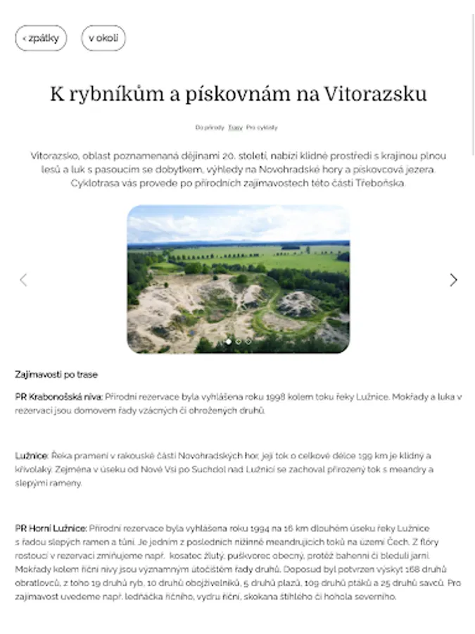 The mobile guide will take you through the Třeboňsko tourist area, which stretches from České Velenice on the Czech-Austrian border to Veselí nad Lužnicí. In the application you will find the best of the whole area: tourist destinations, trips for pedestrians and cyclists or tips on where to eat and stay.