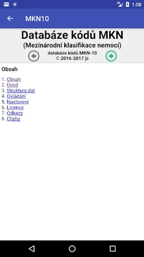 ICD10 advanced search engine database. The application uses unchanged texts containing information on the International Classification of Diseases, Revision 10. From these texts, at the first start of the application, it creates a large indexed database that allows extremely fast and flexible full-text search for disease or code names in both the primary chapters and alphabetical catalogs, viewing comments, tracking links within the text and storing favorites.