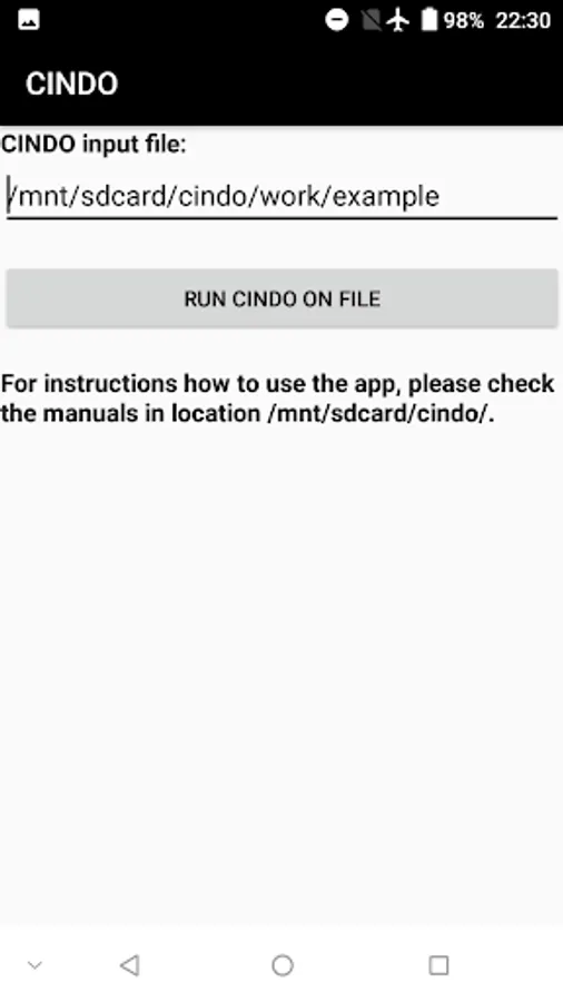 The current package contains CINDO binaries of primary version compiled for the particular Android hardware platforms and adapted for running in generic, stock devices. The app requires permission to access the file-storage. It works completely offline and does not contain ads.
