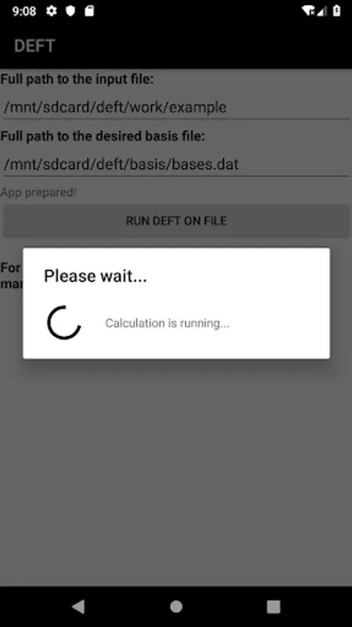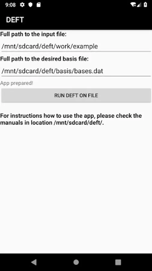 The current version contains DeFT binaries of primary version compiled for the particular Android hardware platforms and adapted for running in generic, stock devices. The app requires permission to access the file-storage. It works completely offline and does not contain ads.