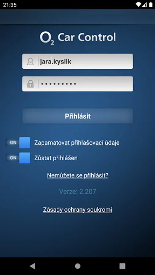 Use of the application is to provide all customers with active service O2 Car Control. To access the application, enter your login information into the portal. More information on www.carcontrol.cz.