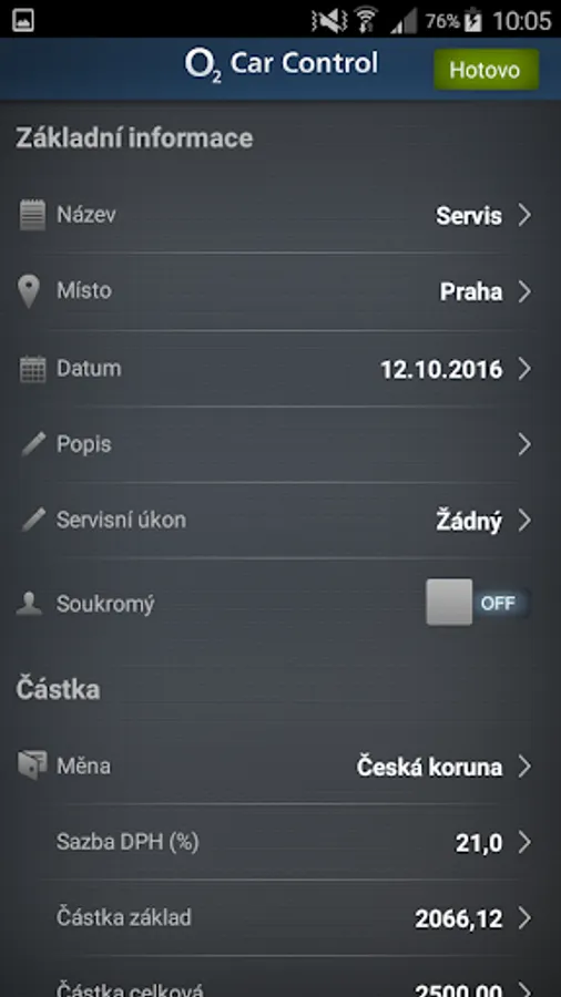 - Expenses - Allows you to enter expenses for refueling or other expenses for the vehicle