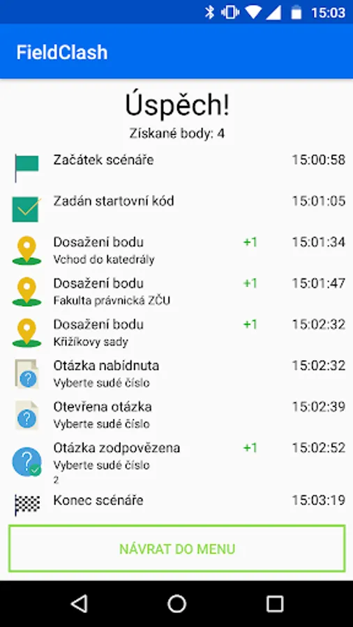 The application serves as a field guide to the game, proposed under the Field Clash. Within the game are specified items that can be designated as mandatory or optional. They can also be hidden (the player must discover their location) or visible (by navigating to them). At each point may be asked by the designer entered into the script - then begin the time limit for a response.