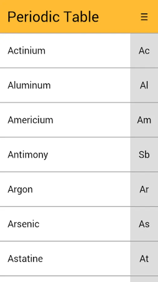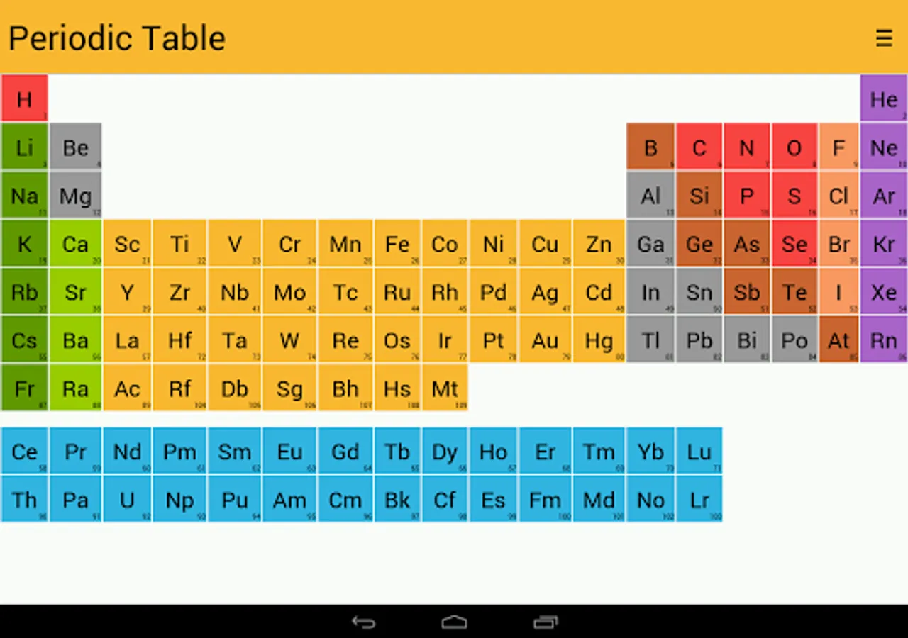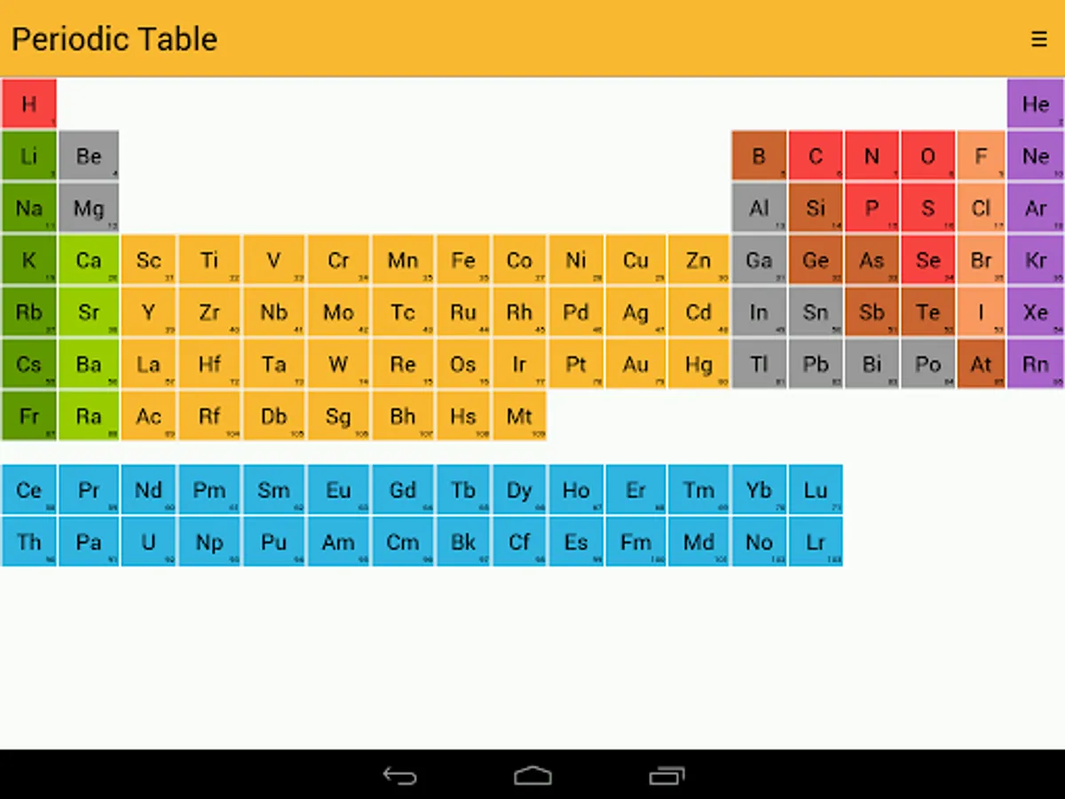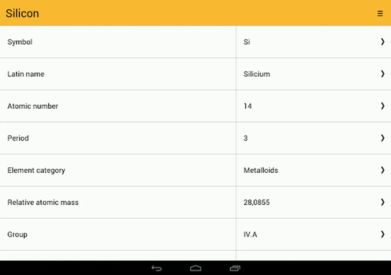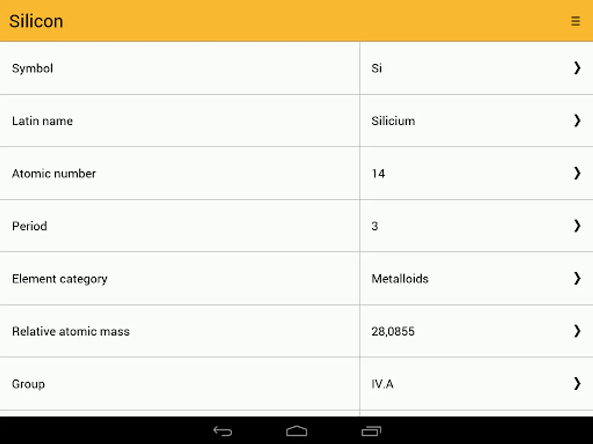A description of each element contains a Latin name, symbol, atomic number, atomic weight, oxidation, Pauling electronegativity, number of stable isotopes, the number of unstable isotopes, melting point, boiling point and density.