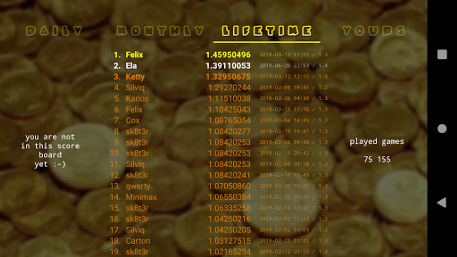 Remember that Bitcoin Hunter is an adrenaline ride that can be addictive and sometimes challenging. Endless attention and quick reaction are required. If you're up for the challenge, let your skills do the talking and discover the world of cryptocurrencies in a whole new light!