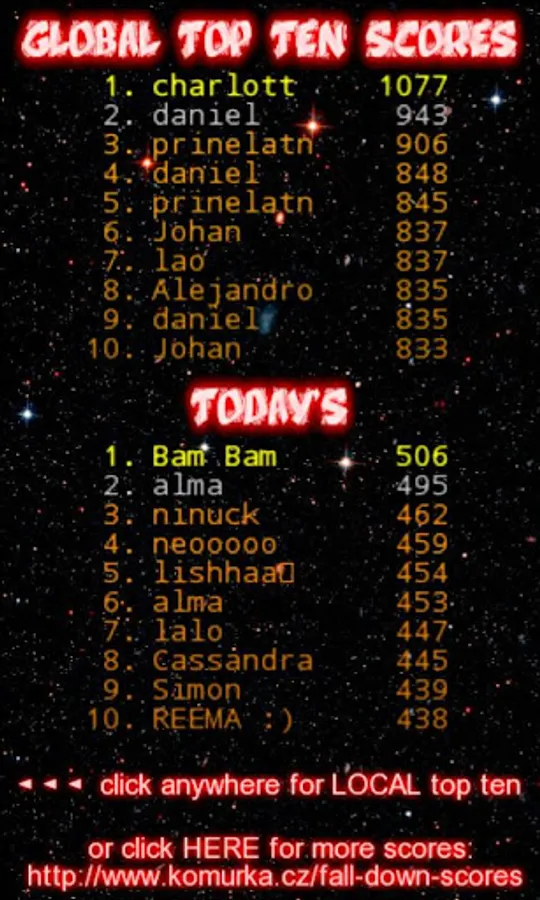 - local, global and daily top ten scores