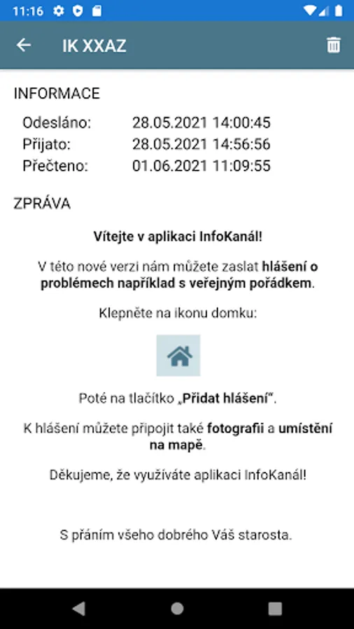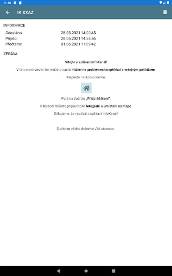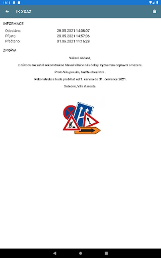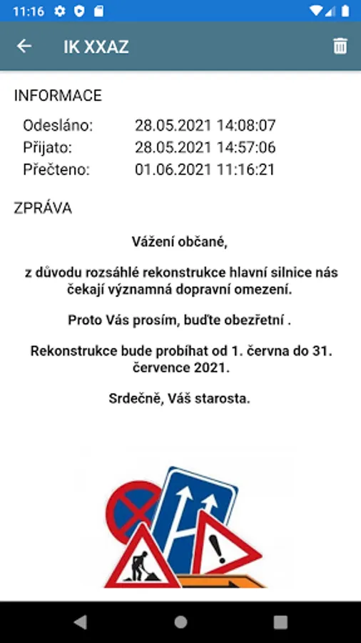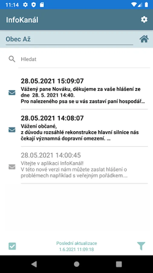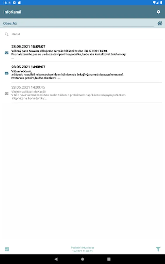 Mobile application that ensures the receipt of messages from the InfoKanál information system of Konzulta Brno using a data connection.