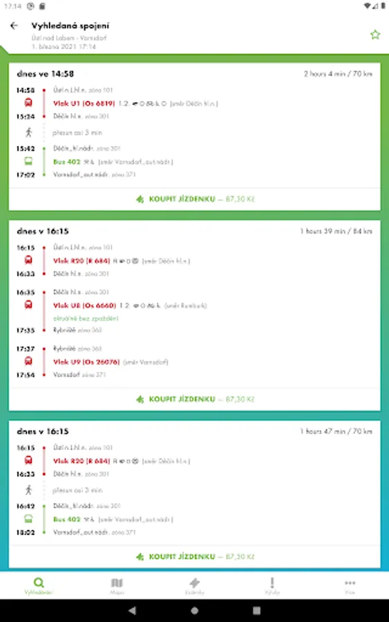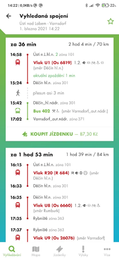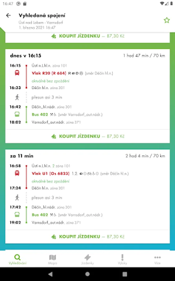 The main functions of DUKapka include the purchase of tickets, search for connections, display of the current traffic situation, such as exceptions on the route, exclusions or delays, or display of the location of the connection.