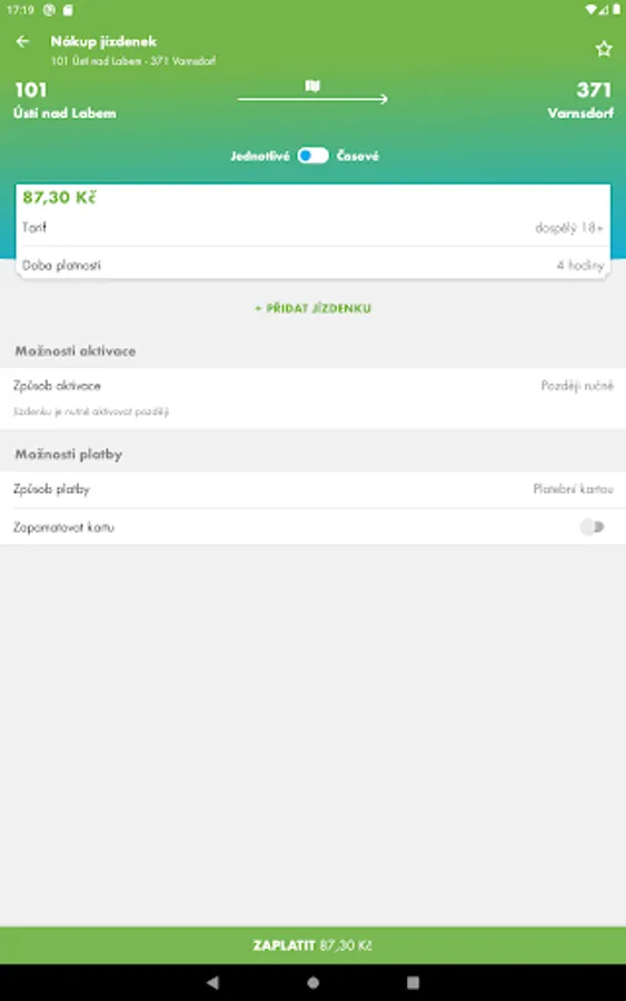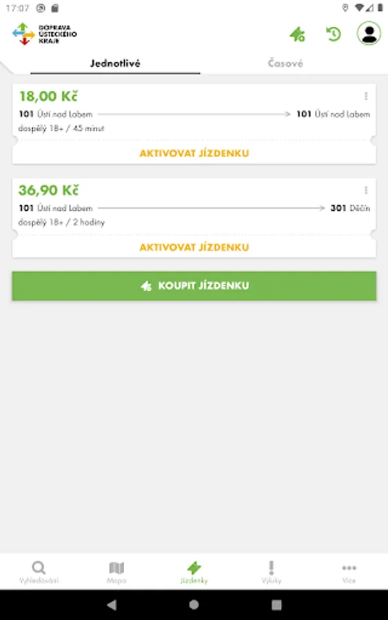 Buying tickets couldn't be easier, after choosing a specific ticket, you can pay by your payment card. Tickets can also be purchased in stock and activated later. To purchase and activate, it is necessary to be connected to the Internet. Inspecting the ticket works offline. The ticket is valid after 1 minute after its activation. Individual and one-day network tickets can also be purchased without registration. For the discounted tickets, the necessary ID must be presented to prove entitlement to the discount.