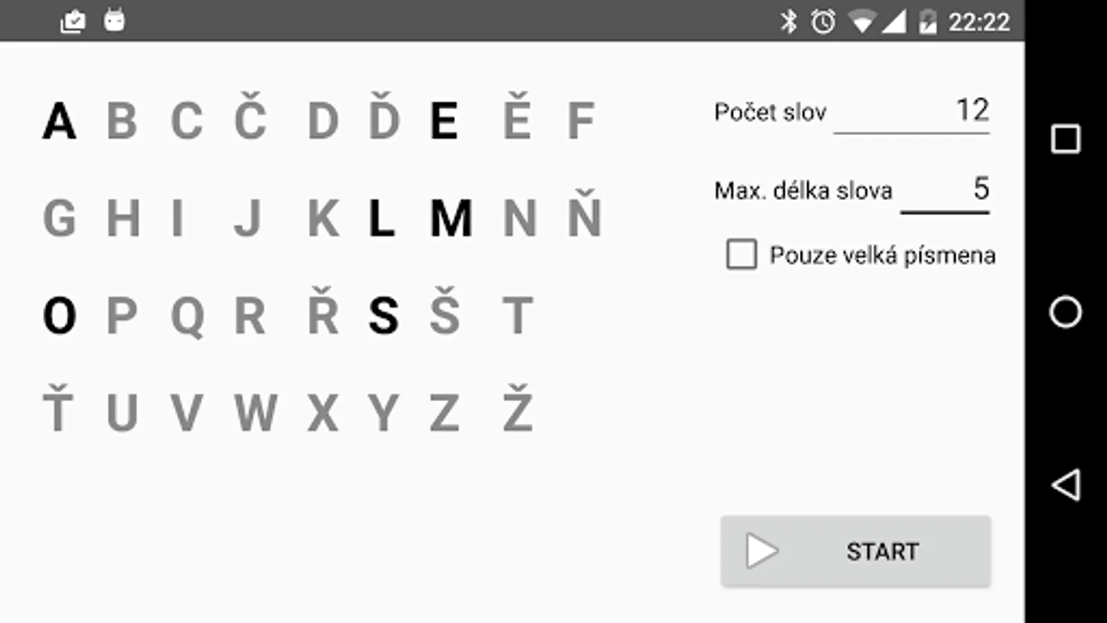 Applications will then shows Czech words that contain only a set letters.