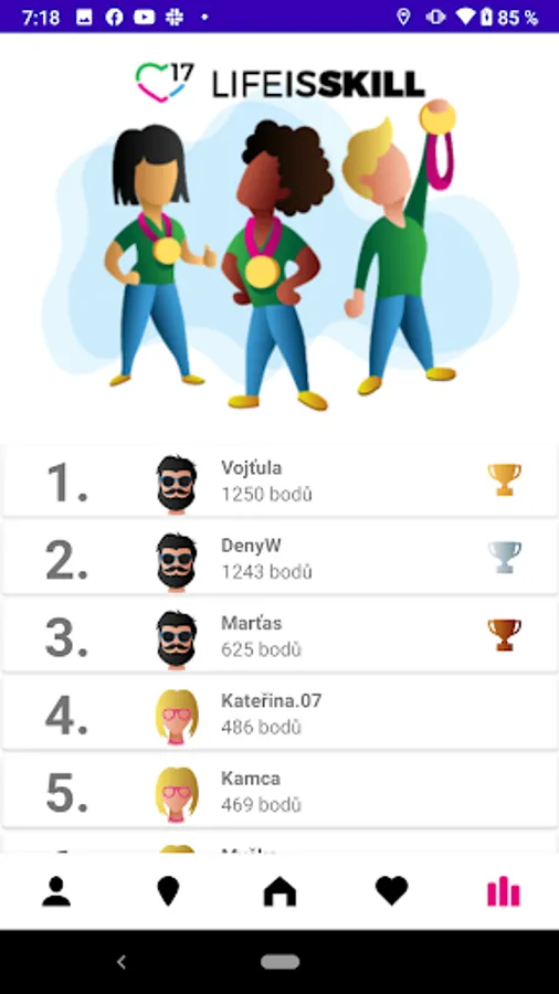 The key to our project is the ability to capture as much as possible the participation of children and young people in all of our registered activities, to evaluate this record and reward the participants according to the results. The assessment is based on the use of our own social environment, Life is Skill, designed to meet the needs of the project. Social space provides information on any issues that are necessary for the success of participants in the project. Space records the participant, his / her own activities, information about the possible activities he / she can participate in, works as a communication platform and much more. The social environment is available on the Internet via a web browser and also as a standalone application for mobile phones. This application has, among other things, one of the key functions of the whole project. It makes it possible to record every participation in the activities, so that it is as objective as possible. This technique also uses this technique, which ultimately tries to keep children and young people away. Each participant demonstrates its participation in the activity by loading the points on its mobile phone, which records everything and sends it to the central register of the whole project. Here, an immediate evaluation takes place and the results, including the current status of each participant, are immediately available on the project portal.