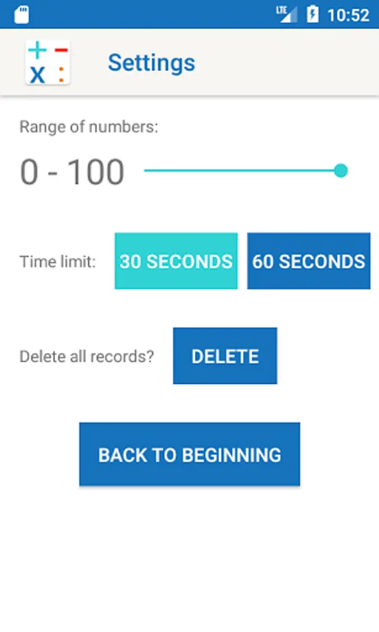 Counting to 100 for kids with numbers from 0 to 100 - test your speed at addition, subtraction, multiplying and division. Set your own range of numbers and time.