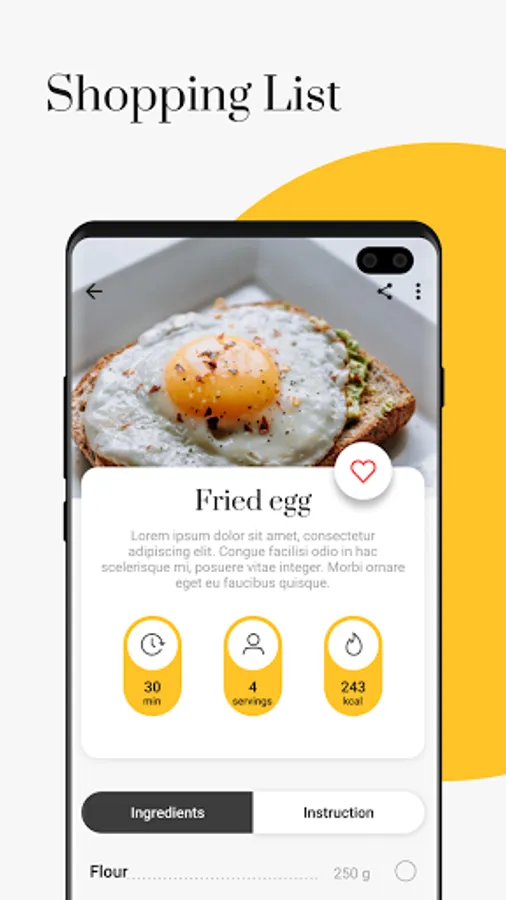 • Shopping list: You can use the ingredient list like a shopping list. Just check the items. You can share the shopping list or recalculate quantities regarding a number of servings.