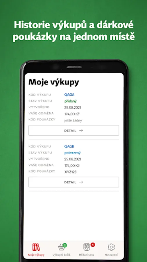 In the application, you can access the history of your purchases with one click, and you have your gift vouchers within reach at any time. You will always have your vouchers at hand, ready for use.