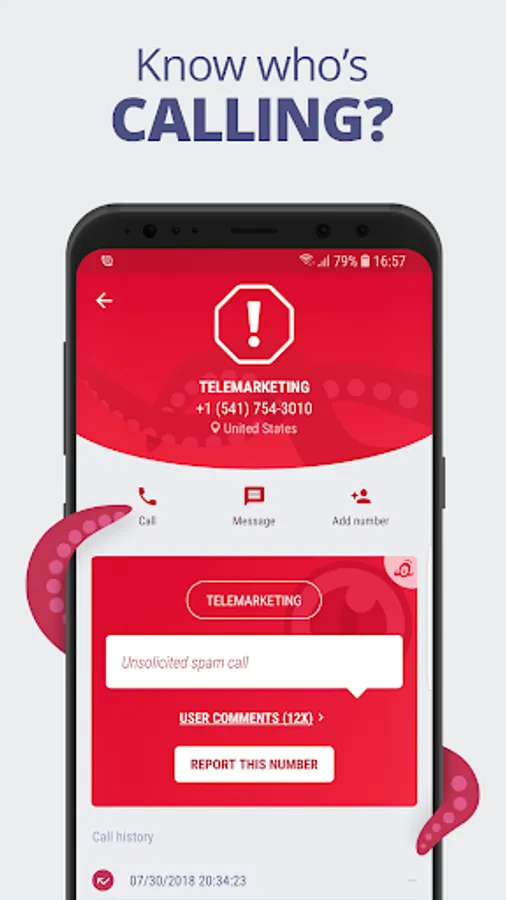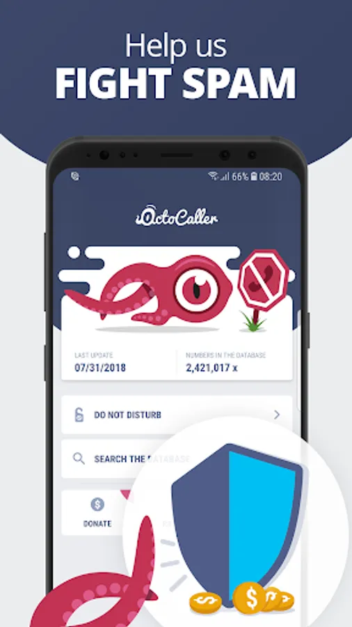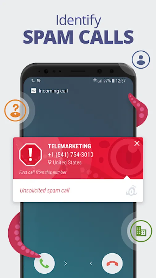 OctoCaller identifies all incoming calls for you. You will know instantly if you should answer. You can also choose to block all spam calls in our database automatically.