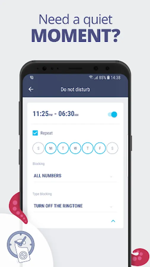 Have a quiet moment for as long as you need! Do you need privacy for a necessary meeting? With this feature you can choose a time interval when you won't be interrupted by any incoming call.