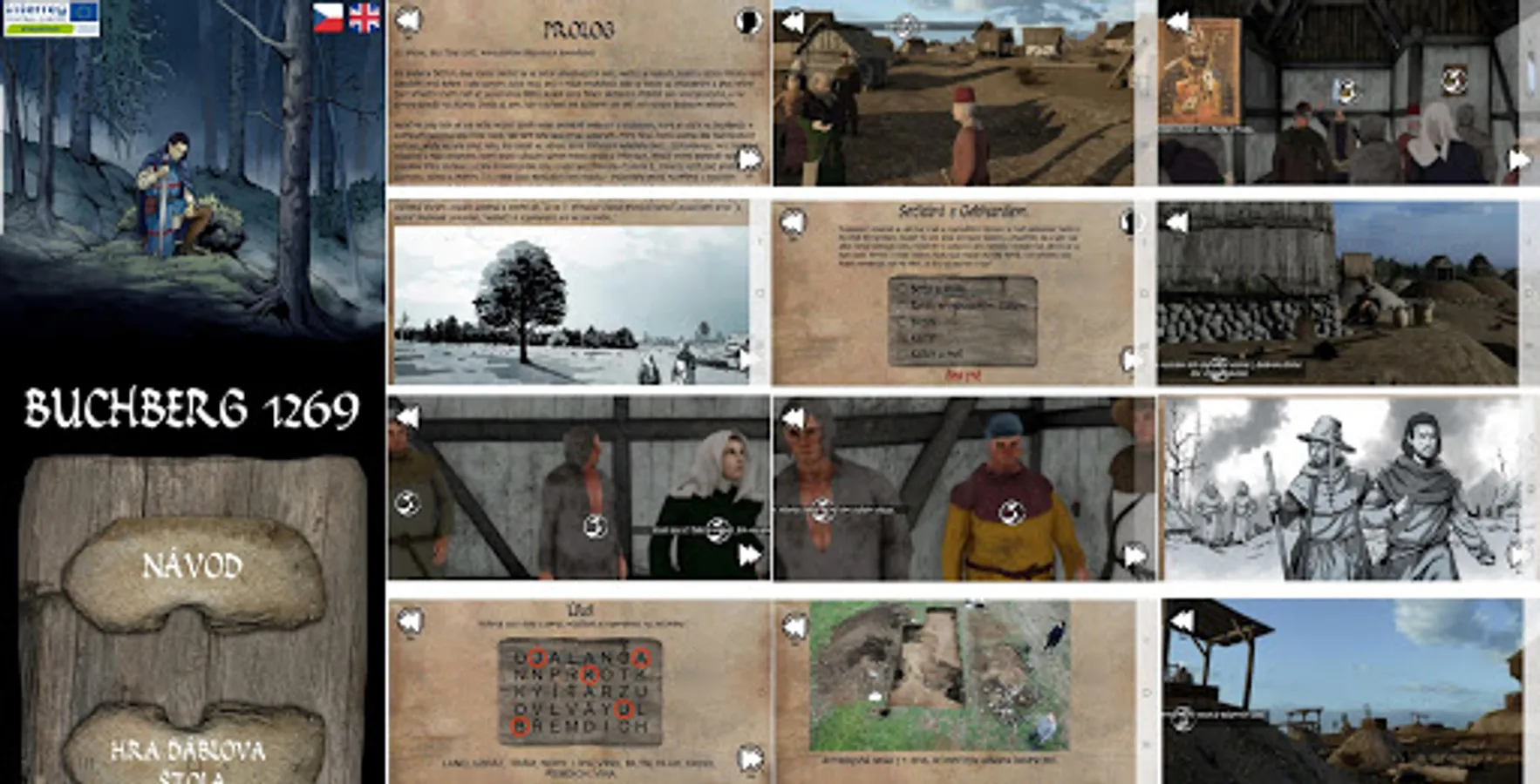 The application was developed as part of the VirtualArch project of the INTERREG Central Europe transnational cooperation program financed by the European Regional Development Fund. On the research and presentation of the Buchberg archaeological site have cooperated two institutions: the Institute of Archeology of the Czech Academy of Sciences, Prague, and the Institute of Archeology and Museology of Masaryk University in Brno (Chief researchers: Petr Hrubý, Jan Mařík; 3D processing: Martin Kostal, Michal Vagner, Jiri Unger; game: Michal Vagner; cartoon illustrations: Michal Kocourek; application development: Best Sequence, Mathesio).