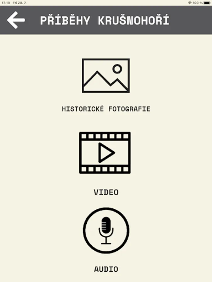 The application includes more than 100 audio interviews with witnesses from the Ore Mountains, mostly in Czech and also in German. These people tell their engaging stories or events associated with specific places. You can listen to these conversations like a radio, i.e. autonomously in the background while driving or working. If you want to listen to the stories systematically by individual speaker, you can search for them on the website www.zkrusnohori.cz or on Spotify.