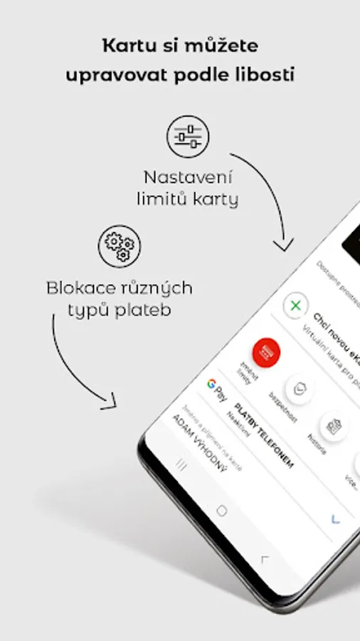 5. Usnadní vám správu platebních karet – nastavení limitů, změny PINu nebo rychlého zablokování karty.