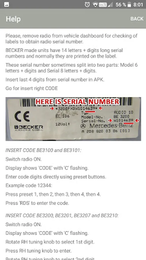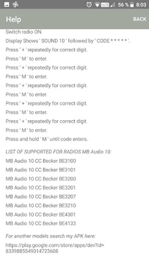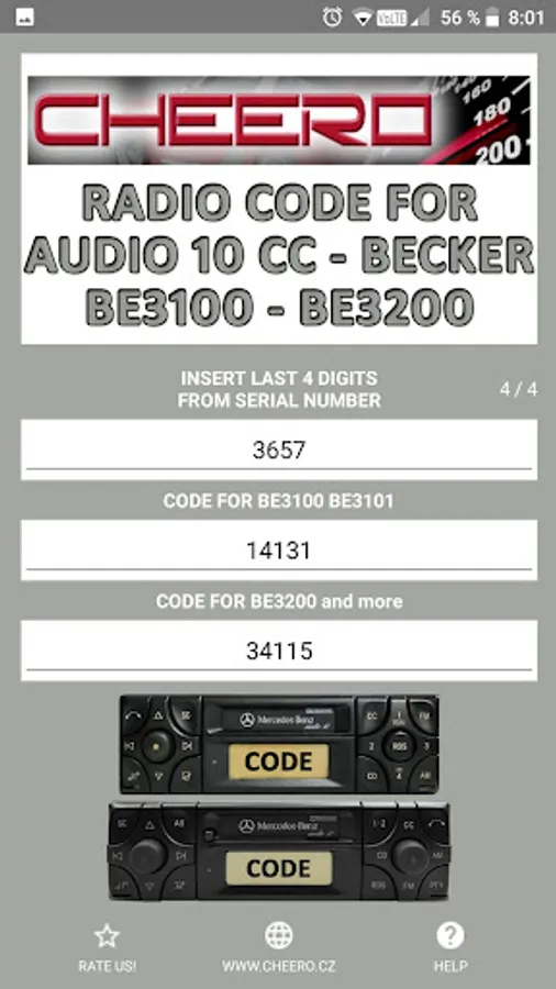 Radio CODE for AUDIO 10 CC BECKER BE3100 BE3200 and more models radio.