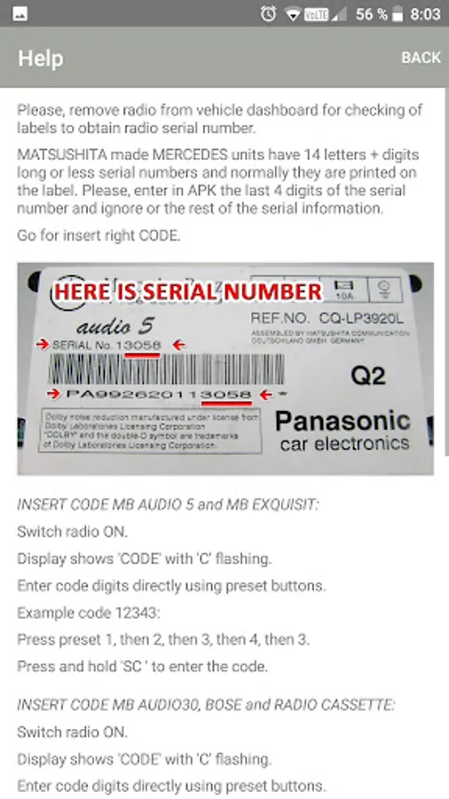 Radio CODE for AUDIO 5 CC PANASONIC MATSUSHITA and more models radio.
