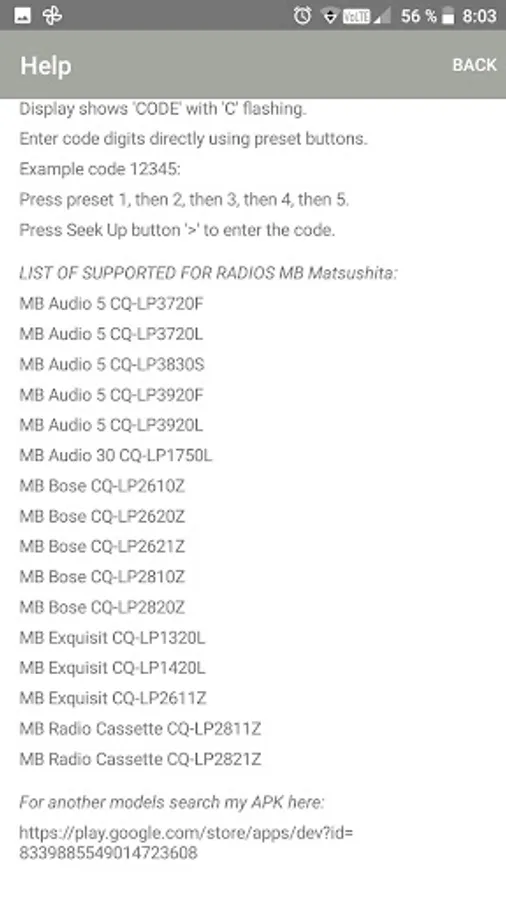 LIST OF SUPPORTED FOR RADIOS MB PANASONIC MATSUSHITA: