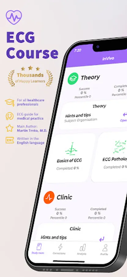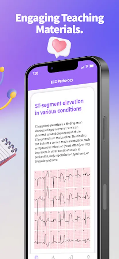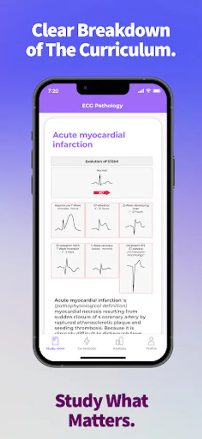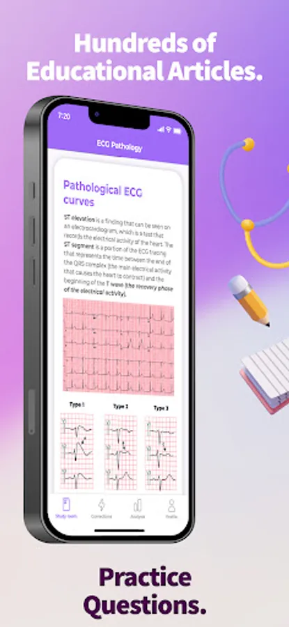 Unlike traditional textbooks, the ECG app offers a comprehensive platform that breaks down the complexities of ECGs into easy-to-follow chapters. Each chapter contains tutorials and a set of model questions that allow you to test your knowledge and track your progress. The app also includes an Analysis section that provides an anonymous comparison of your test results with other users.
