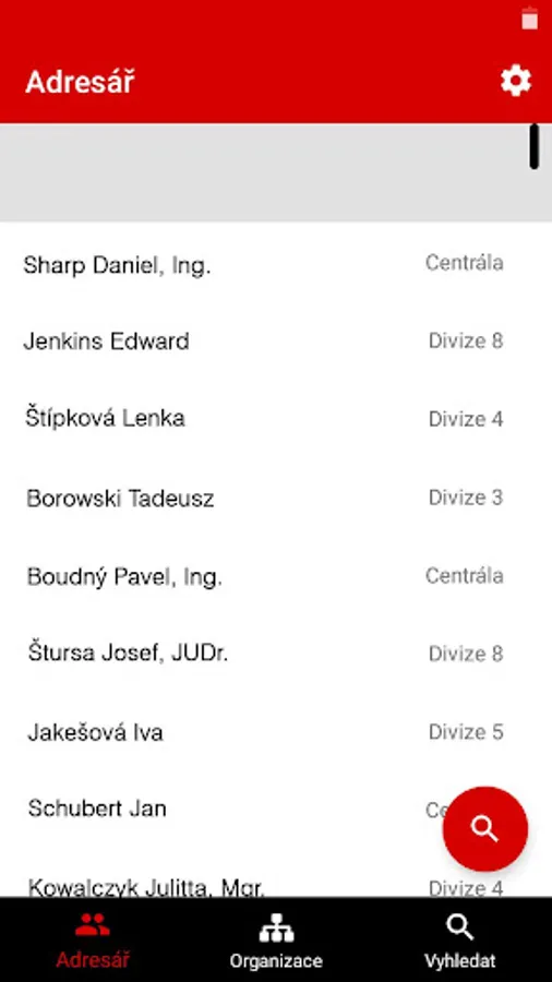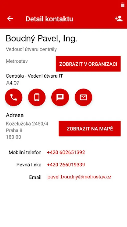 The directory contains contacts of employees of the Metrostav Group companies and allows: