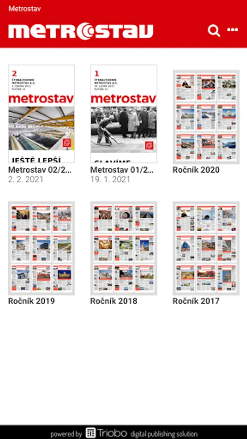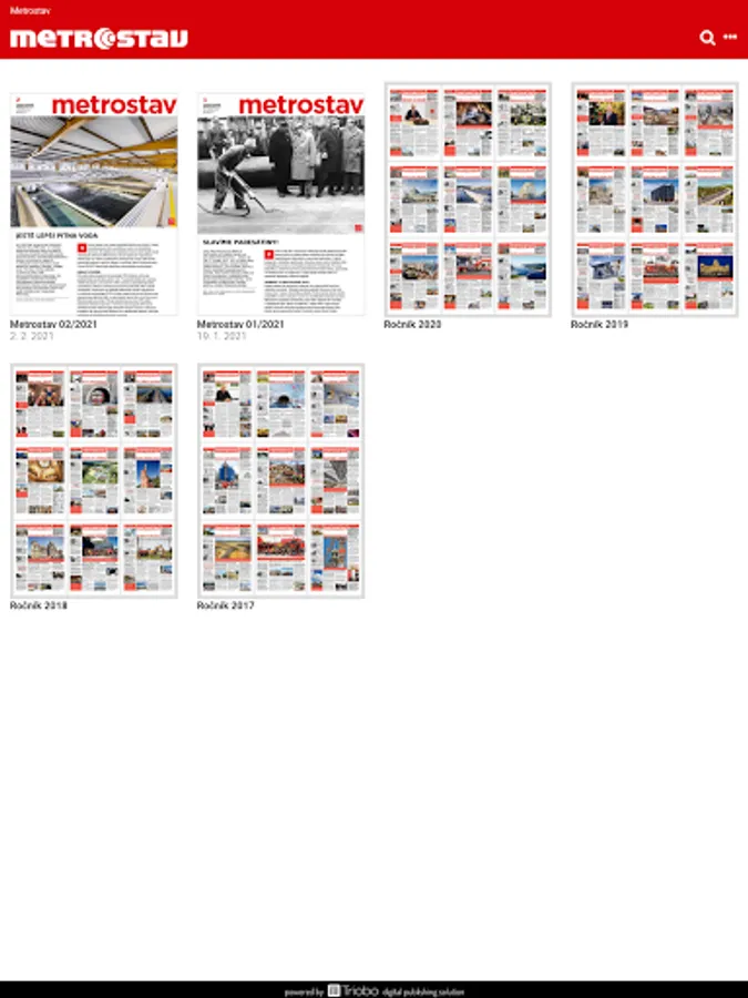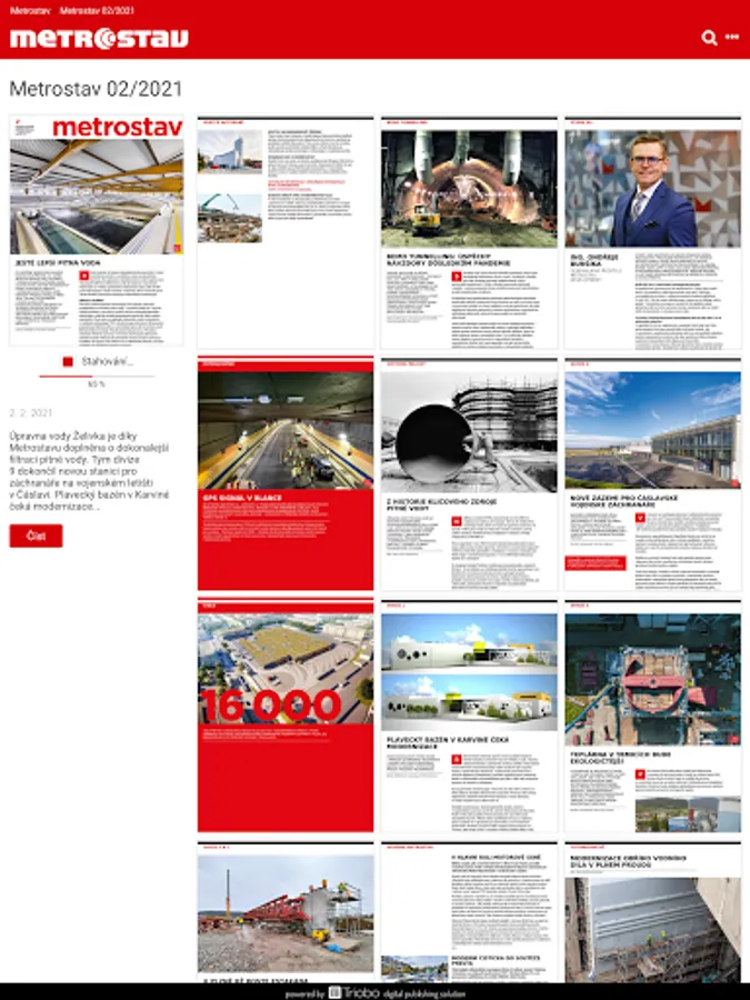 A tool for interactive preview of the Metrostav fortnightly. This electronic version of the company newspaper expands the content of the printed version with more information, other unique photographs and interesting videos from remarkable projects of a leading Czech construction company with a long history.