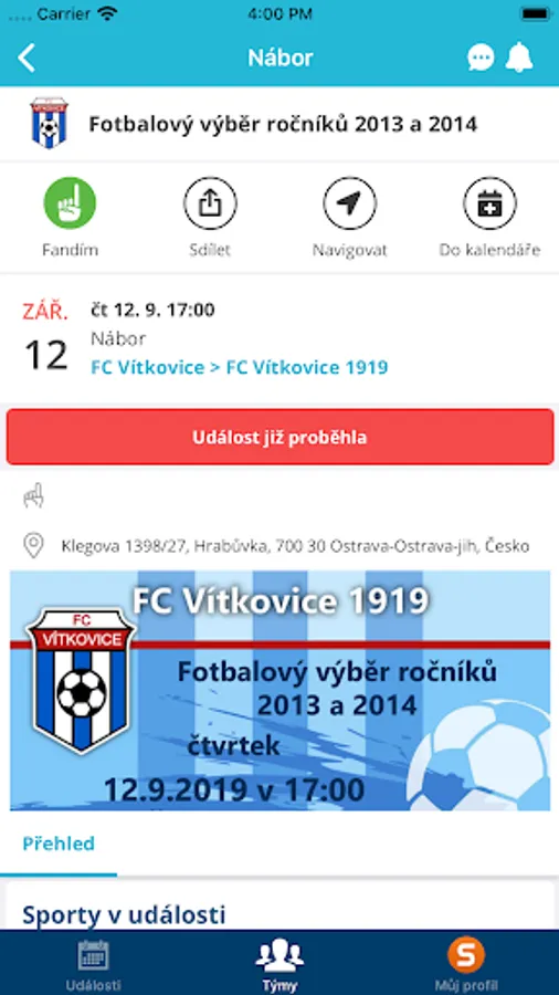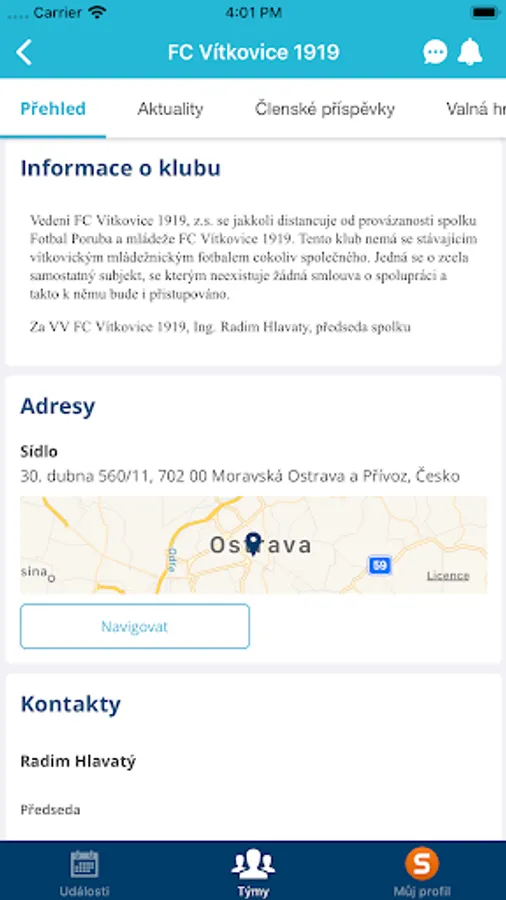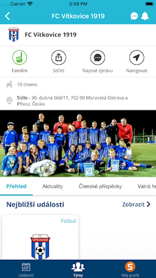 Application for members and fans to review events and clubs of FC Vitkovice 1919.